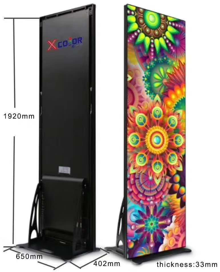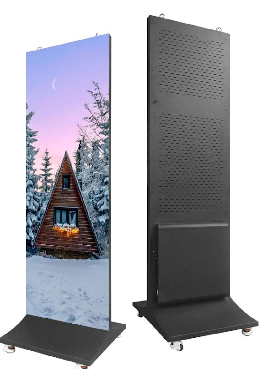 The LED screen measures 64cm wide by 192cm tall, which gives you a huge display area of 1.23m². You can opt to use a single LED poster for a slimline display, or link up to six posters together for a seamless, side-by-side large display. Linking five panels together creates a 16:9 picture ratio. Each indoor LED poster screen has a pixel pitch of 2.5mm to display high quality images and video.